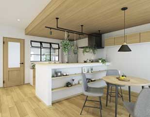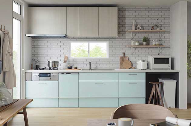 普及価格帯ながら、様々なご要望に幅広く応えられるキッチン。熱や衝撃、汚れに強く、お手入れ簡単な人造大理石カウンターとシンクはもちろん、基本仕様をおさえたプランです。