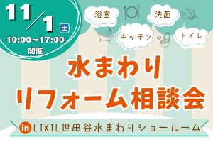 【開催終了】11月1日(土)水まわりリフォーム相談会 in LIXIL世田谷水まわりショールーム