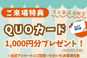 【ご来場特典】QUOカード 1,000円分プレゼント!!