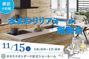 11月15日(土)タカラスタンダード足立ショールームにて、水まわりリフォーム相談会を開催します。
