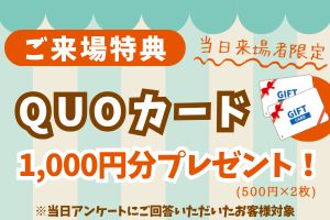 【ご来場特典】QUOカード 1,000円分プレゼント!!