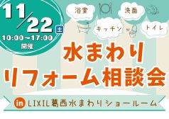 11月15日(土)タカラスタンダード足立ショールームにて、水まわりリフォーム相談会を開催します。 ショールームにご来場いただくと、リフォーム後のイメージや、商品の特長・リフォームのポイントが体感できます。ぜひこの機会にご […]