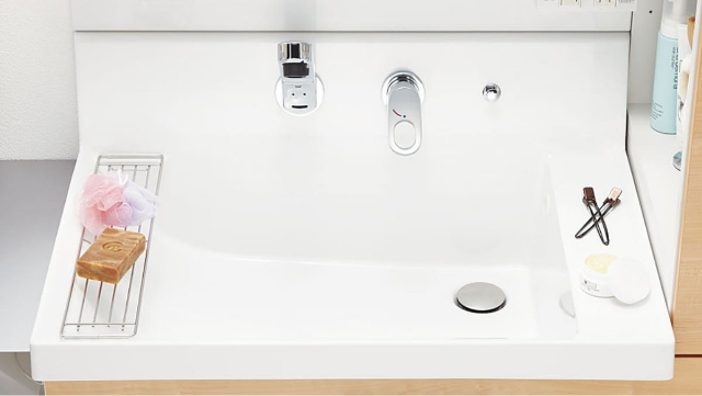 ひろびろボウルは底が広くて平らなので、バケツの水汲みや衣類のつけ置き洗いもしやすいです。排水口を右奥に配置しているので、作業の邪魔になりません。
