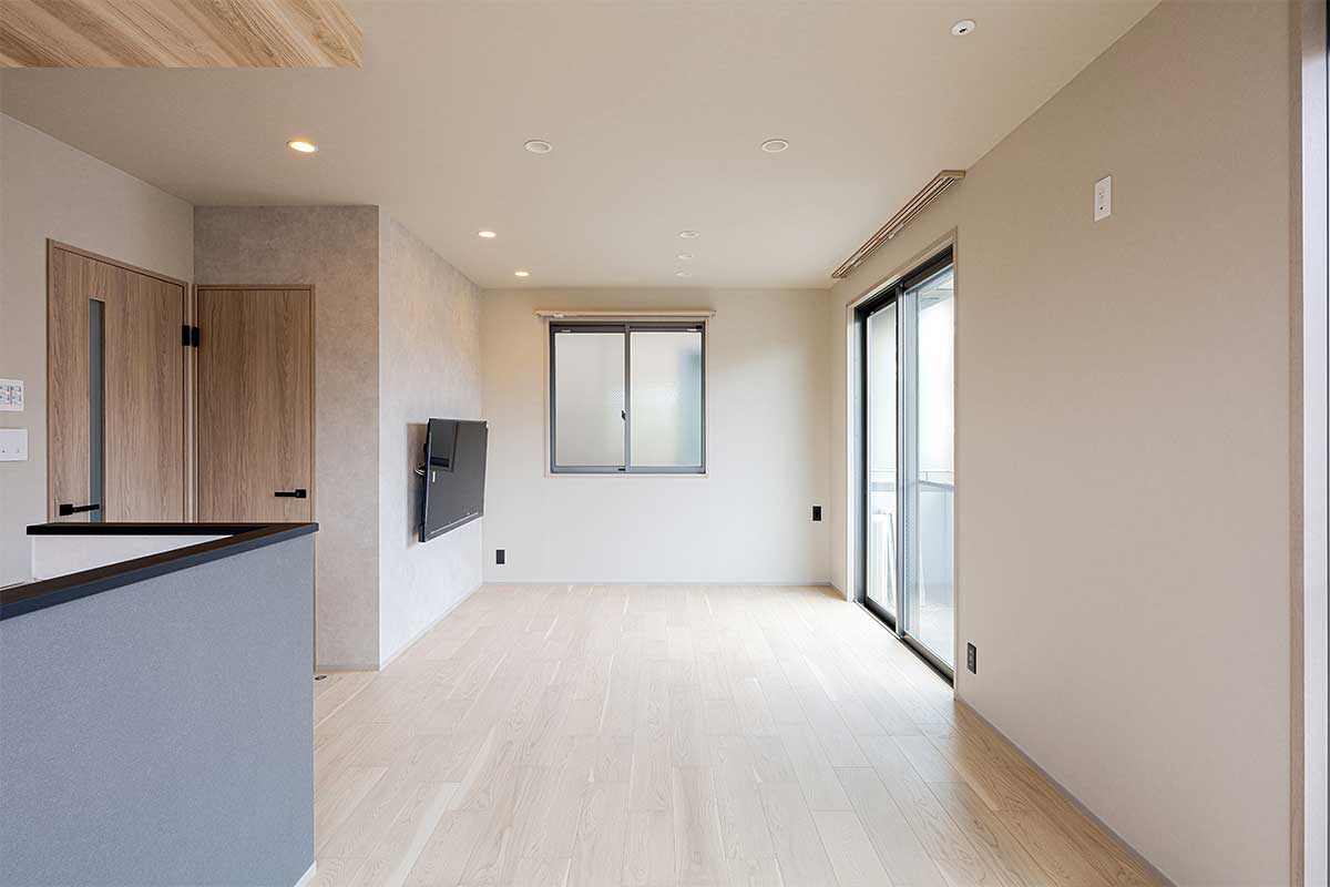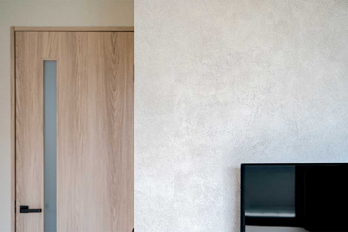 周辺クロスと巾木には、定番のホワイトではなく、今流行りのニュアンスカラーを採用し、シンプルながらもセンスの光る空間になりました。