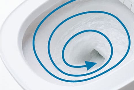 水流をコントロールする独自の形状でぐるりと洗う「スパイラル水流」で、勢いよく旋回しながら内面全体をまんべんなくキレイにします。