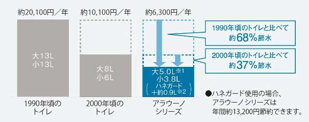 ※水道代は男性2人、女性2人の4人家族が1日16回(大4回、小12回)、365日使用した場合で計算。
