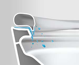 フチの立ち上がりで外に垂れ汚れをおさえる「タレガード」