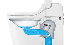 パナソニック独自の排水方式で、少量の水で、勢いよく流す。排水路にたまった水を一気に排出する「ターントラップ方式」で、少ない水量でしっかり洗浄します。