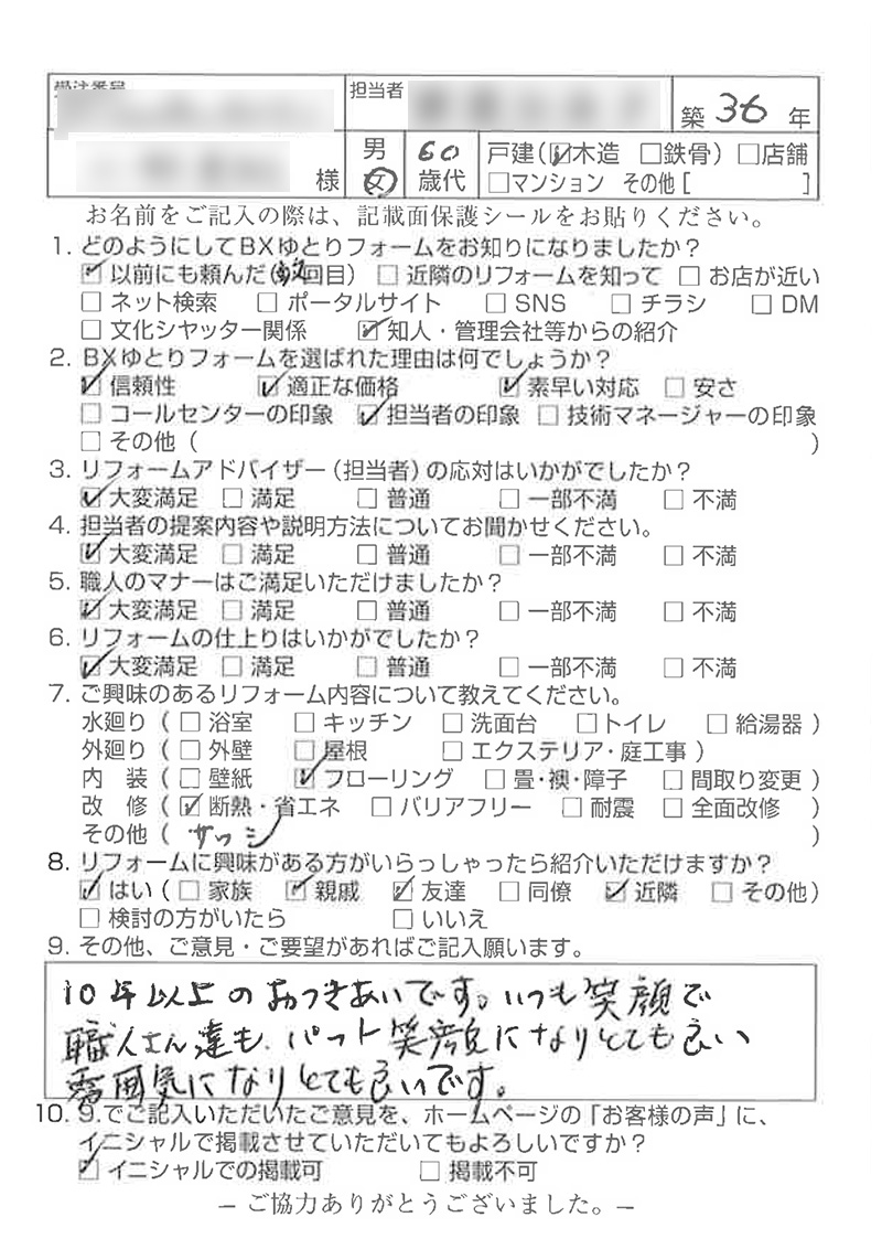 今までいろんな所、リフォームやったけどゆとりフォームさんが親切で気づかいがとてもいいです。なっとくいきます。