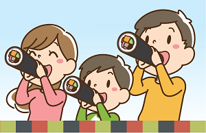 節分の日に、その年の恵方(吉方向)を向き、切らずに1本まるごと、無言で食べる。