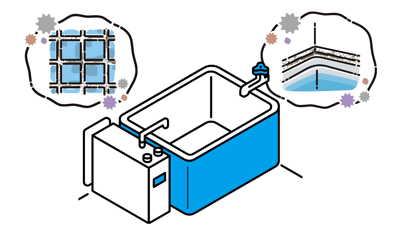 新しいユニットバスは、「24時間換気扇を回しても床の水気が取れない」というお悩みを解決するため、排水性の高さを重視しました。
